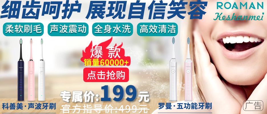 随着生活品质提高,个人护理需求越来越高,其中电动牙刷是最重要个护产品之一,因为人如果牙不好,老年不但可吃东西减少,更影响身体健康,所以牙齿一定要早护理。睿意生活馆推出的罗曼电动牙刷已售出6万多把。另科善美电动牙刷也在升级后重新上线,戳图抢购。