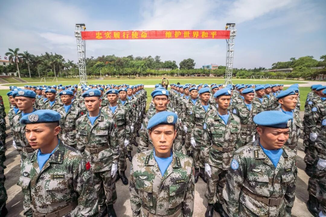 饥饿与贫困 炎热与疾病中 中国军人用勇气、智慧和能力 在联合国维和任务区守护着和平 有一种骄傲 叫中国蓝盔