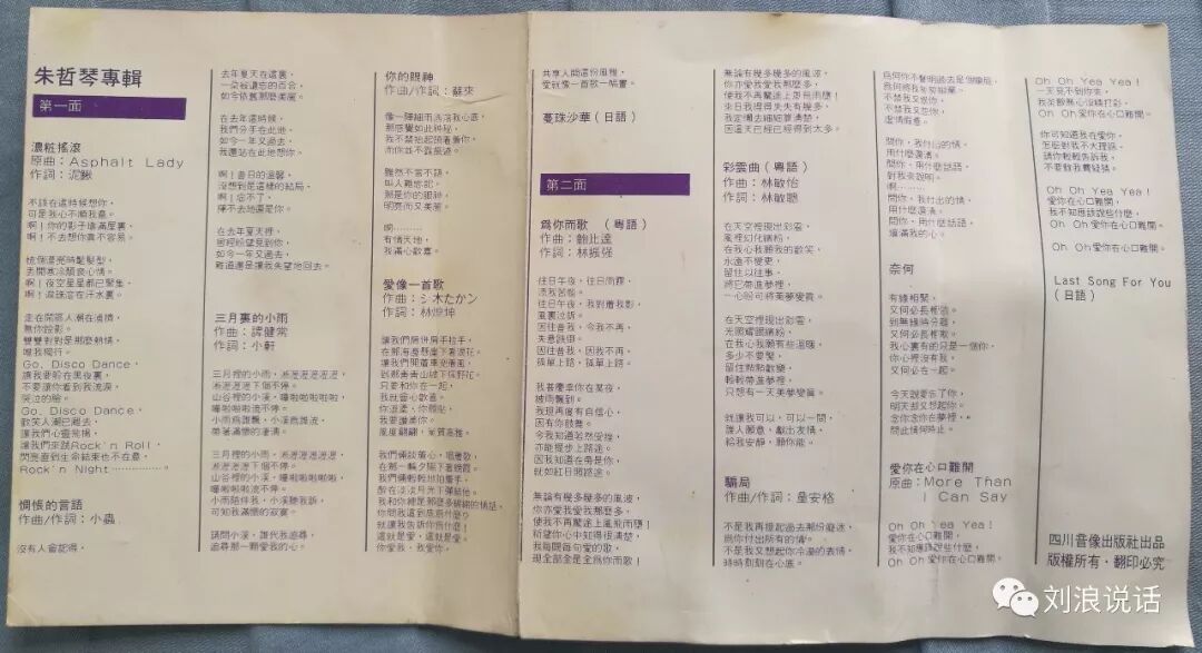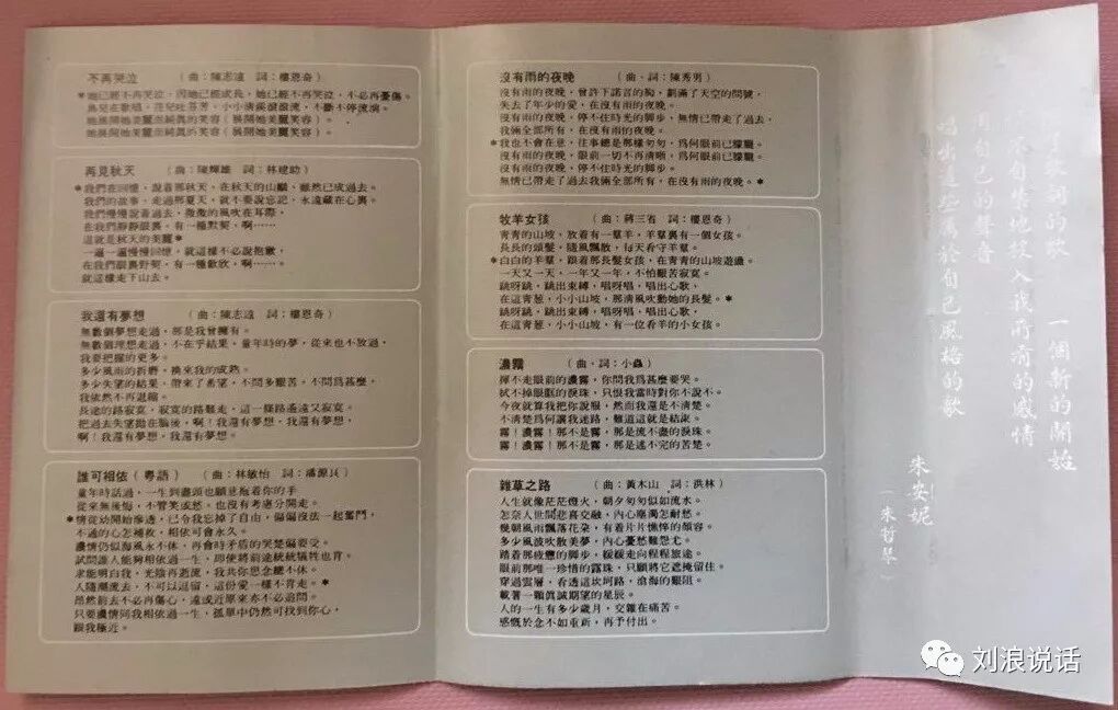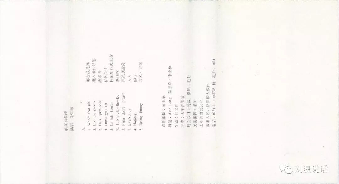这盘专辑,应该算是朱哲琴翻唱年代较好的一张,包括日语演唱的两首歌,基本都做了重新编曲,录音、和音等也都颇有水准。这盘专辑的选歌,都是当时尤其南方的流行金曲,那时,朱哲琴正在南海音带厂任音乐编辑,接触多且广。