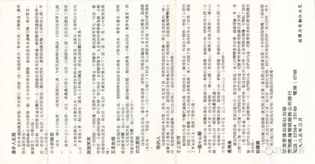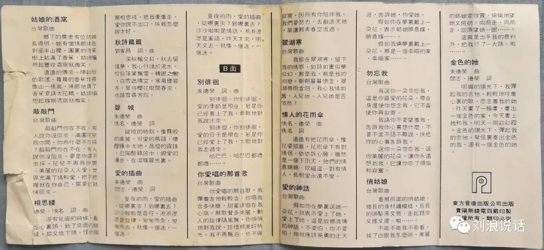 出版:东方音像出版公司,印制:贵阳无线电四厂