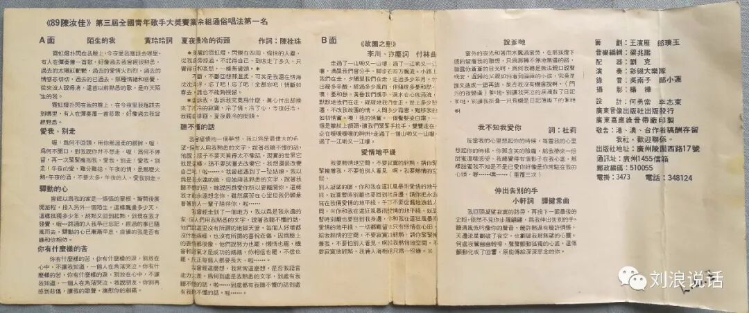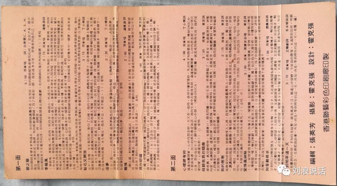 出版发行:中国旅游声像出版公司,印制:山东潍坊录音磁带厂、香港联艺彩色印刷厂