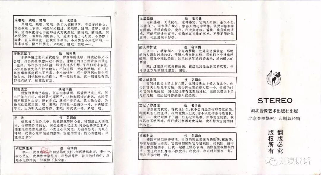 出版:中国录音录像公司,印制发行:北京音响器材厂