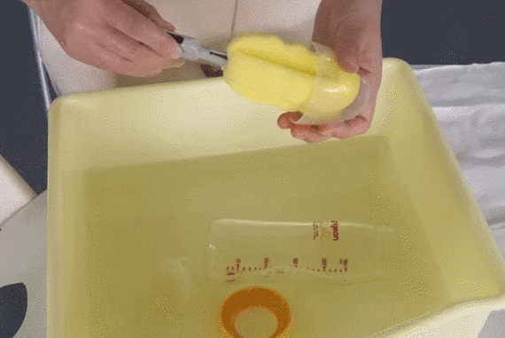 如果娃喝完奶后,被其他事情耽搁了、没办法及时做到清洗奶瓶的话,可以先用热水快速冲洗一下奶瓶,直至瓶子里残留的奶液全部被冲掉。