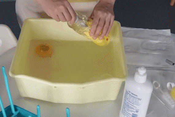 (PS:宝宝的清洗工具必须是专!用!的!只能用来洗奶瓶,千万别粗心大意的拿去当厨房用具了哦!)