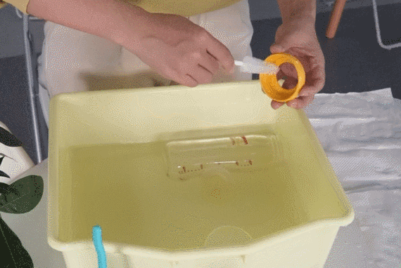 2、拿一个大点的容器,像是盆子之类就可以,在里面装满清水,加入适量的奶瓶清洗剂。