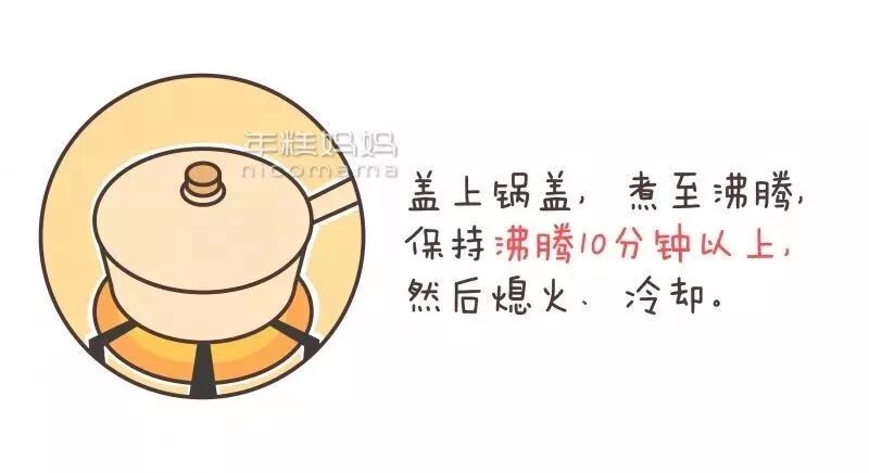 注意保持沸腾 10 分钟以上,但不要超过 20 分钟(因为部分奶瓶即使可以煮,也有时间限制,最多不要超过 25 分钟)。