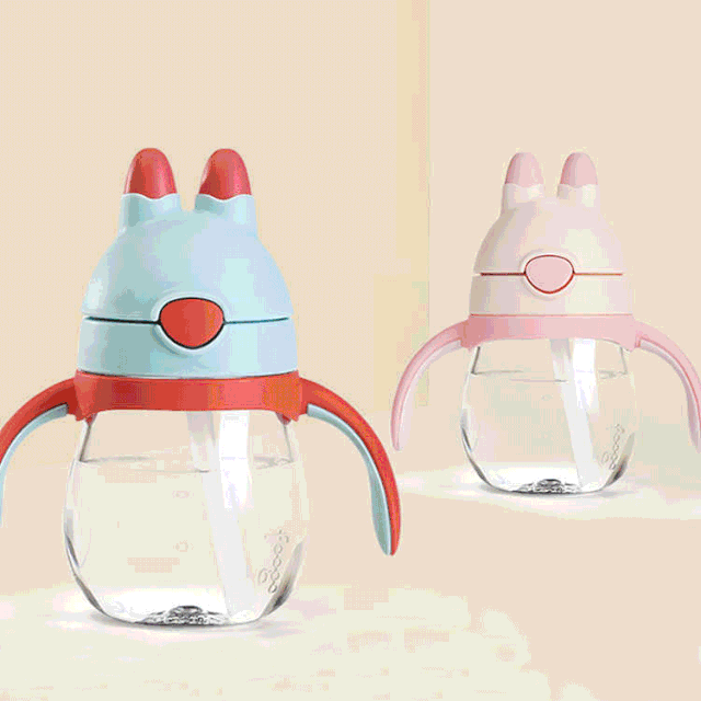 每款都有 4 种配色,渐变粉、渐变蓝、蓝绿色、橘蓝色,超吸睛的。杯盖还设计成了小兔子造型,很萌很 Q。宝宝戒奶瓶的关键期,有它妈妈更轻松!