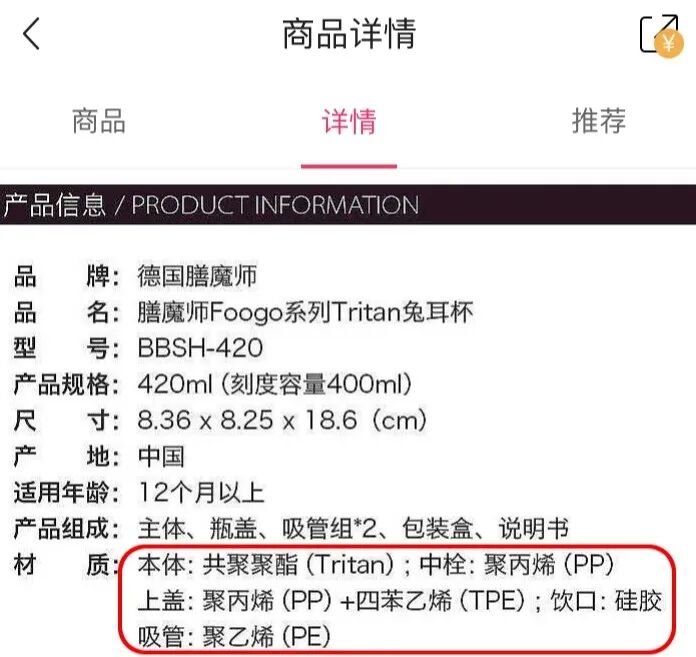 不含双酚 A , 吸嘴采用奶嘴同等级别的