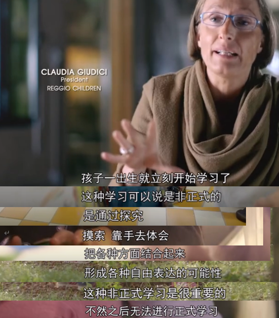 意大利瑞吉欧教育主席克劳迪娅 ·朱迪西在片中说道:孩子从一出生就开始学习了,但他们学习的方式是