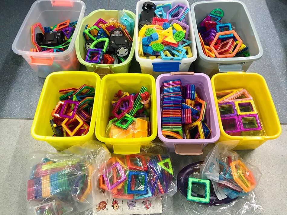 为了选出质量过关的教具,我们几乎把国内知名的磁力片工厂都跑遍了,淘汰的样品不计其数,堆满了我们办公室的仓库。