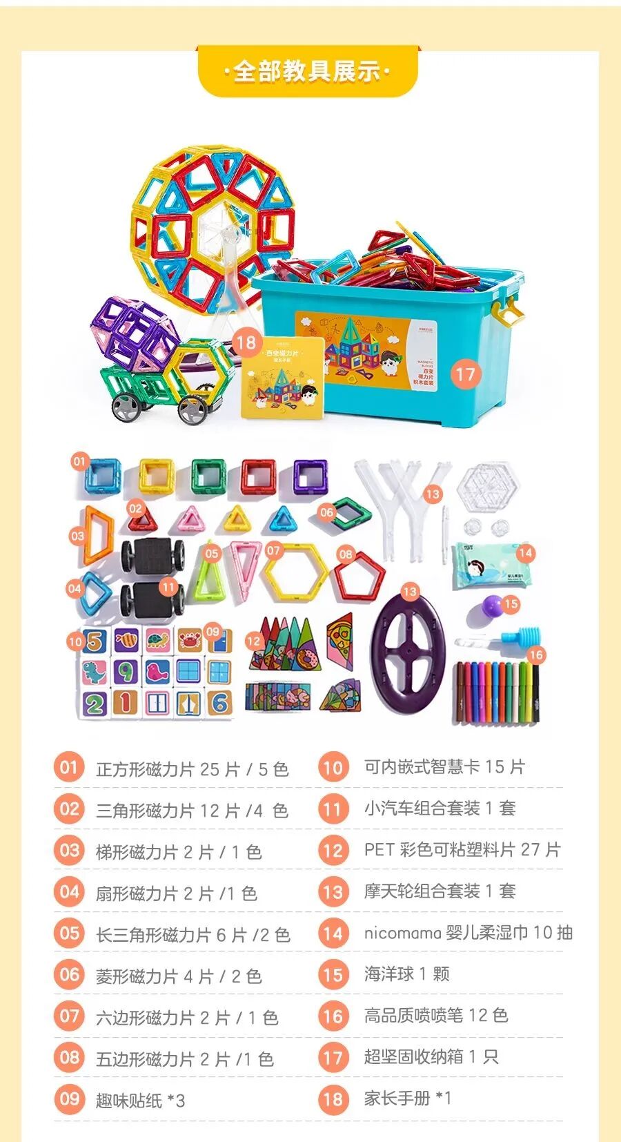在国外,磁力片早就是一些家庭、幼儿园人手必备的玩具。也被用作 steam 教育的教具,每次玩都是孩子逻辑思维、想象力、创造力及手眼协调的锻炼。