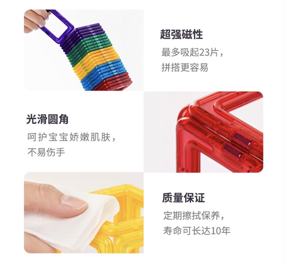 最后选择的这款磁力片,不仅经过了我们自己的试验:用门夹、用力摔、磁力测试,还通过了国家 3C 玩具认证,可以说是层层把关。