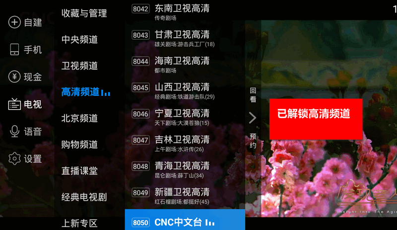 3.如下图所示,已解锁高清频道,除了烂大街的卫视频道,还有一些特色高清频道。
