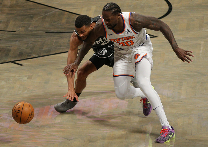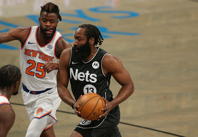 末节,上来尼克斯队便打出7-2,分差缩近至7分,篮网队请求暂停,暂停回来,篮网队欧文拔起就是命中三分,帮助球队止血,随后两队则是持续冲击篮下,分差持续在10分上下,但突然见尼克斯这边伯克斯反击三分命中,分差被缩近至6分,随后篮网这边连续不中,巴雷特又抓住反击得手,分差缩近至4分,篮网迅速叫停,暂停回来,篮网队哈登、欧文连续得分,帮助球队稳住局面,而尼克斯这边兰德尔、巴雷特则是予以回应,维持比赛悬念,而来到最后时刻,尼克斯队对篮网队采用包夹战术,连续奏效,还剩5.7秒尼克斯落后3分手握球权有绝平的机会,但兰德尔接球执行最后一攻跳起犹豫没有出手,最终篮网队以117-112险胜尼克斯队。