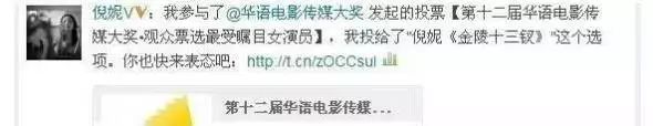 倪妮之前就是在微博上给自己投票,并意外把投票转发到微博上了,喜欢她的粉丝还到处吹倪妮敢作敢当真性情,给自己投票不匿名。