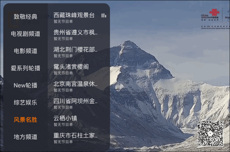 7.内置海量特色频道:例如爱系列频道、New轮播频道、风景名胜直播频道;