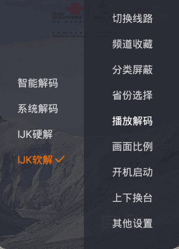 注意:实测发现,播放解码设置为“IJK软解”时,播放最流畅;