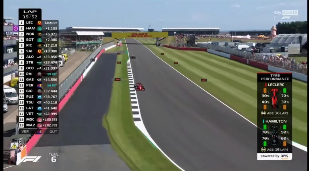 第15圈后,Leclerc反复多次向车队提出引擎熄火,而车队似乎一时找不出解决的方法。Hamilton在背后火照屁股,Leclerc这领跑显然比想象得还要难。问题在17圈解决。
