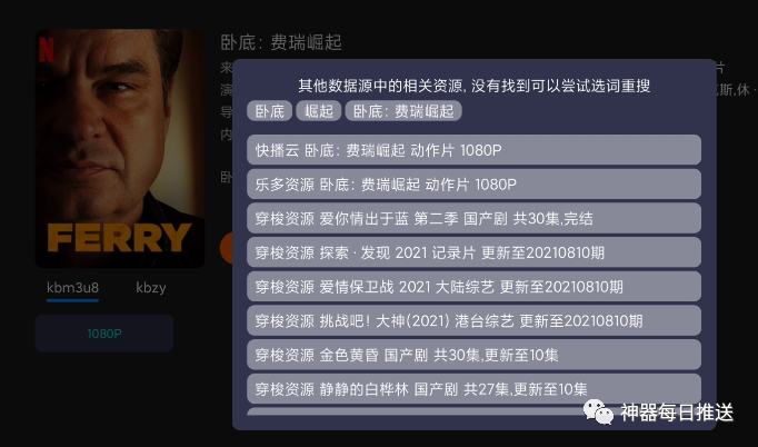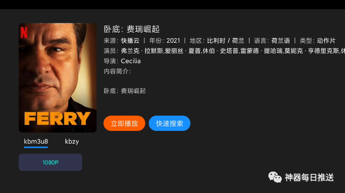 8、每部影片的页面都有一个「快速搜索」功能,戳一下会展开所有影视源,直接点击某个影视源即可播放;
