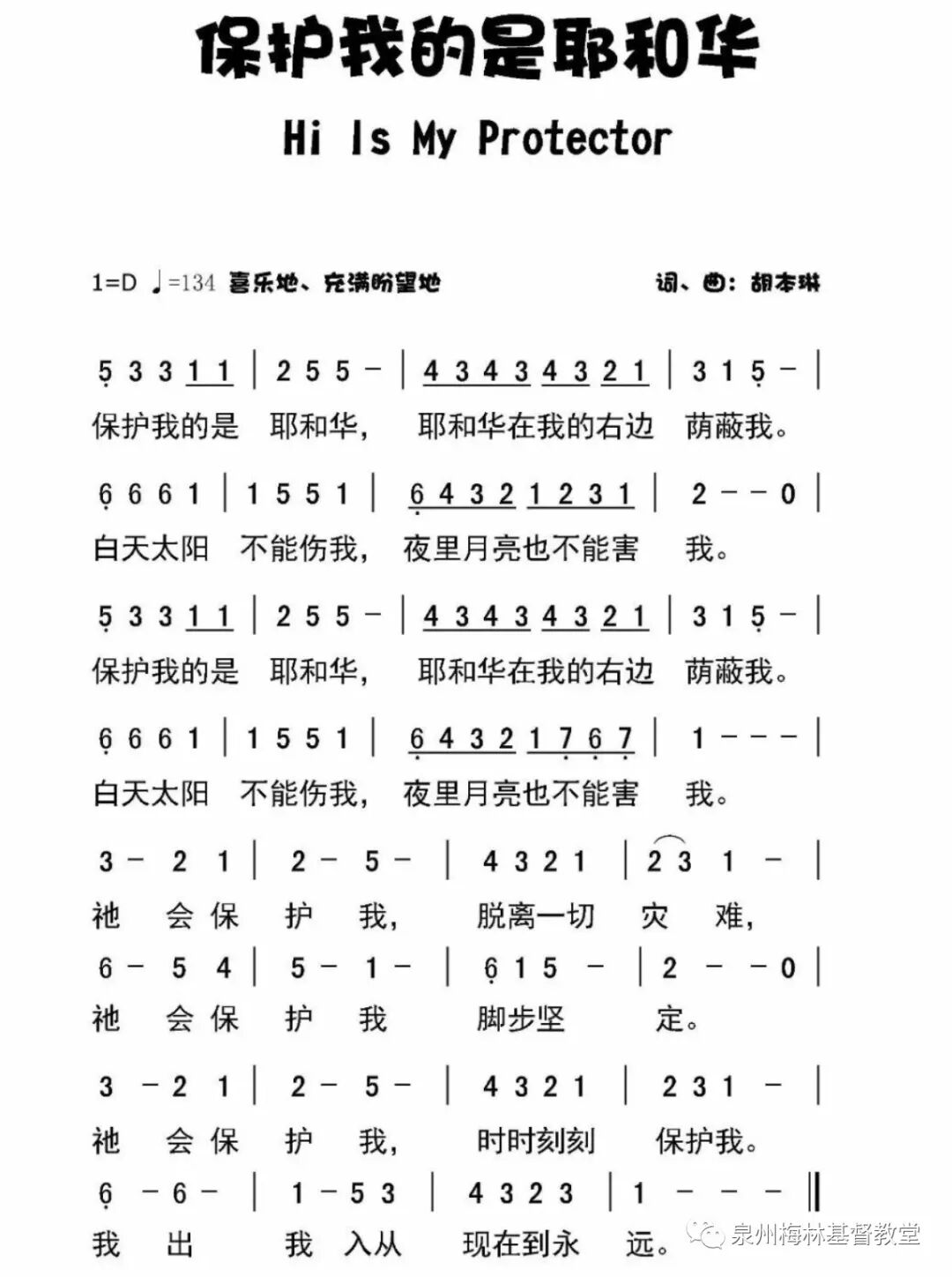 +- 首页 儿童敬拜赞美专辑6 正文 音频播放地址: 视频播放地址: Youtube播放地址: 词曲:胡本琳 保护我的是耶和华 耶和华在我的右边阴蔽我 白天太阳不能伤我 夜里月亮也不能害我 衪会保护我脱离一切灾害 衪会保护我脚步坚定 衪会保护我时时刻刻保护我 我出我入从现在到永远 歌谱: 儿童敬拜1儿童敬拜2儿童敬拜3儿童敬拜4儿童敬拜5儿童敬拜6儿童敬拜7赞美之泉 赞美之门 收藏 分享 链接