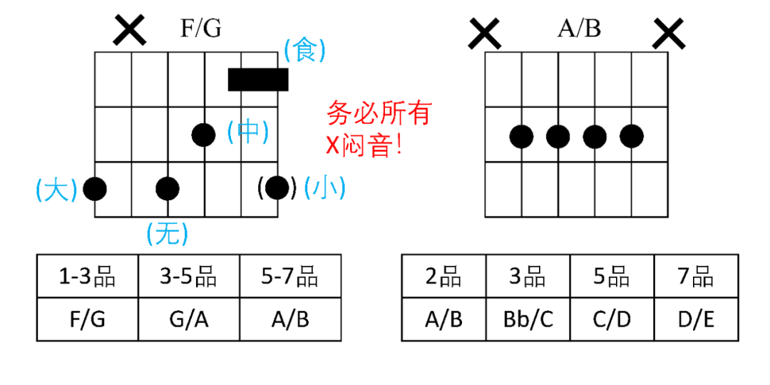 吉他上,有两套常用手型。左边手型的大拇指一开始有些难摁,但练一周一定能摁出来。(歪个楼,大拇指灵活程度也是影响吉他指弹水平的天花板之一。)