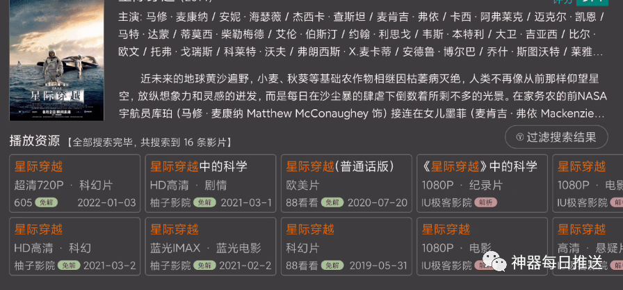 2、 「TV影院1632大神复活版」已去除了全部广告,比如去除了片源检索时的广告源;