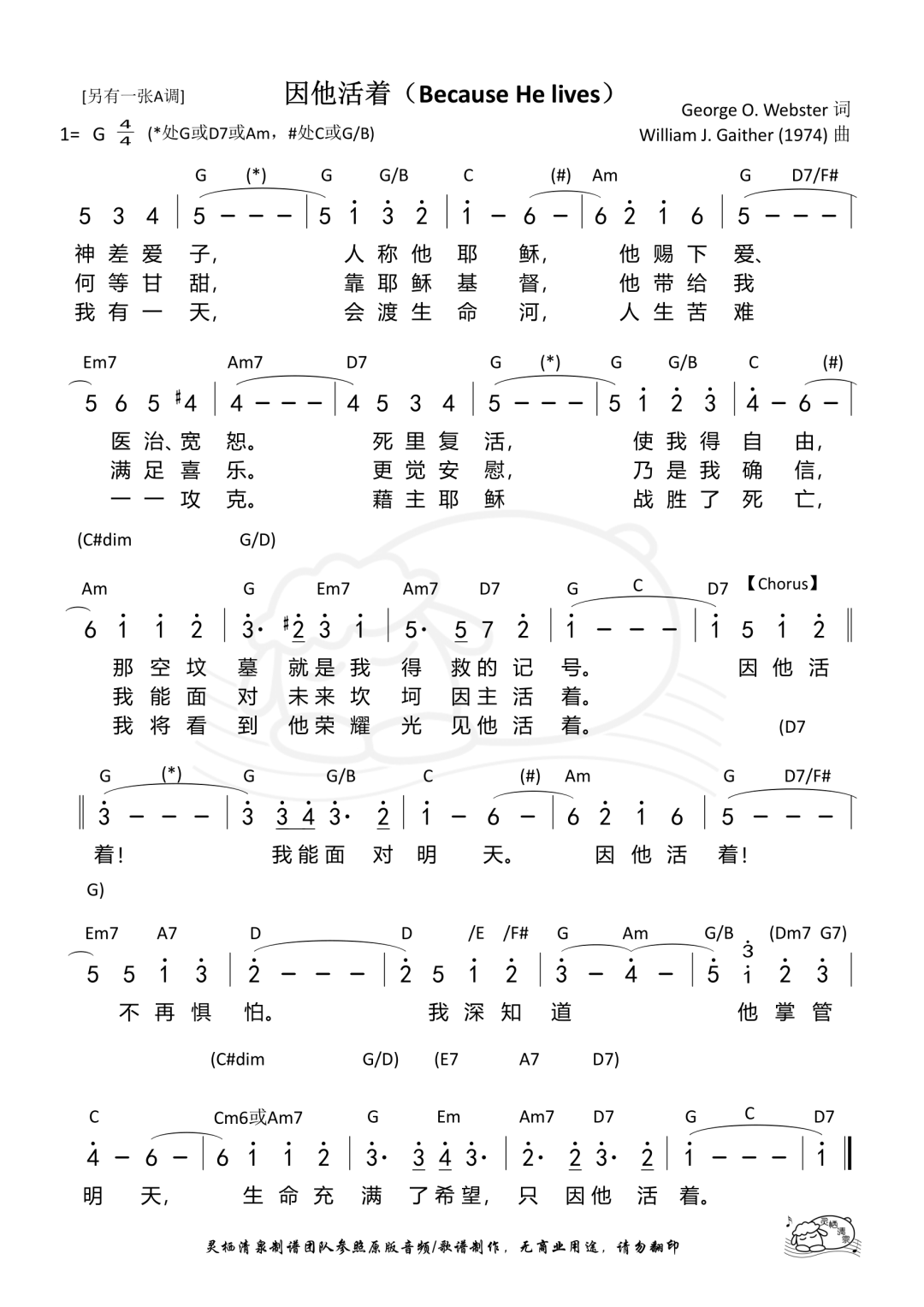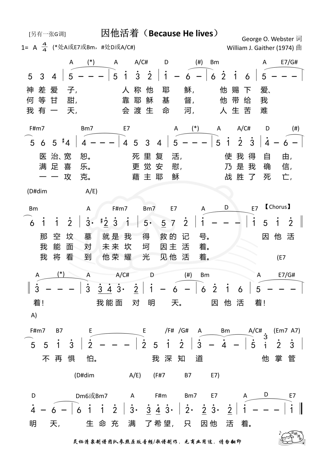 +- 首页 赞美诗歌 正文 音频播放地址: 视频播放地址: 《因祂活著》 神赐爱子 祂赐下爱 医治宽恕 祂捨生命 使我得拯救 那空坟墓就是我的得救记号 何等甘甜 靠耶稣基督 祂带给我 满足喜乐 更觉安慰 乃是我确信 我能面对未来坎坷因主活著 我有一天 会渡生命河 人生苦难 一一攻克 藉主耶稣 战胜了死亡 我将看到祂荣耀光见祂活著 因祂活著 我能面对明天 因祂活著 不再惧怕 我深知道 祂掌管明天 生命充满了希望只因祂活著 备用音频: 歌谱(A调): 歌谱(G调): 赞美诗歌未整理以斯拉盛晓玫祝瑞莲生命河灵粮堂小羊诗歌Jesus Image天韵合唱团新酒使命团我心旋律JLSS BlessedThe Hope佳音 赞美之门 收藏 分享 链接