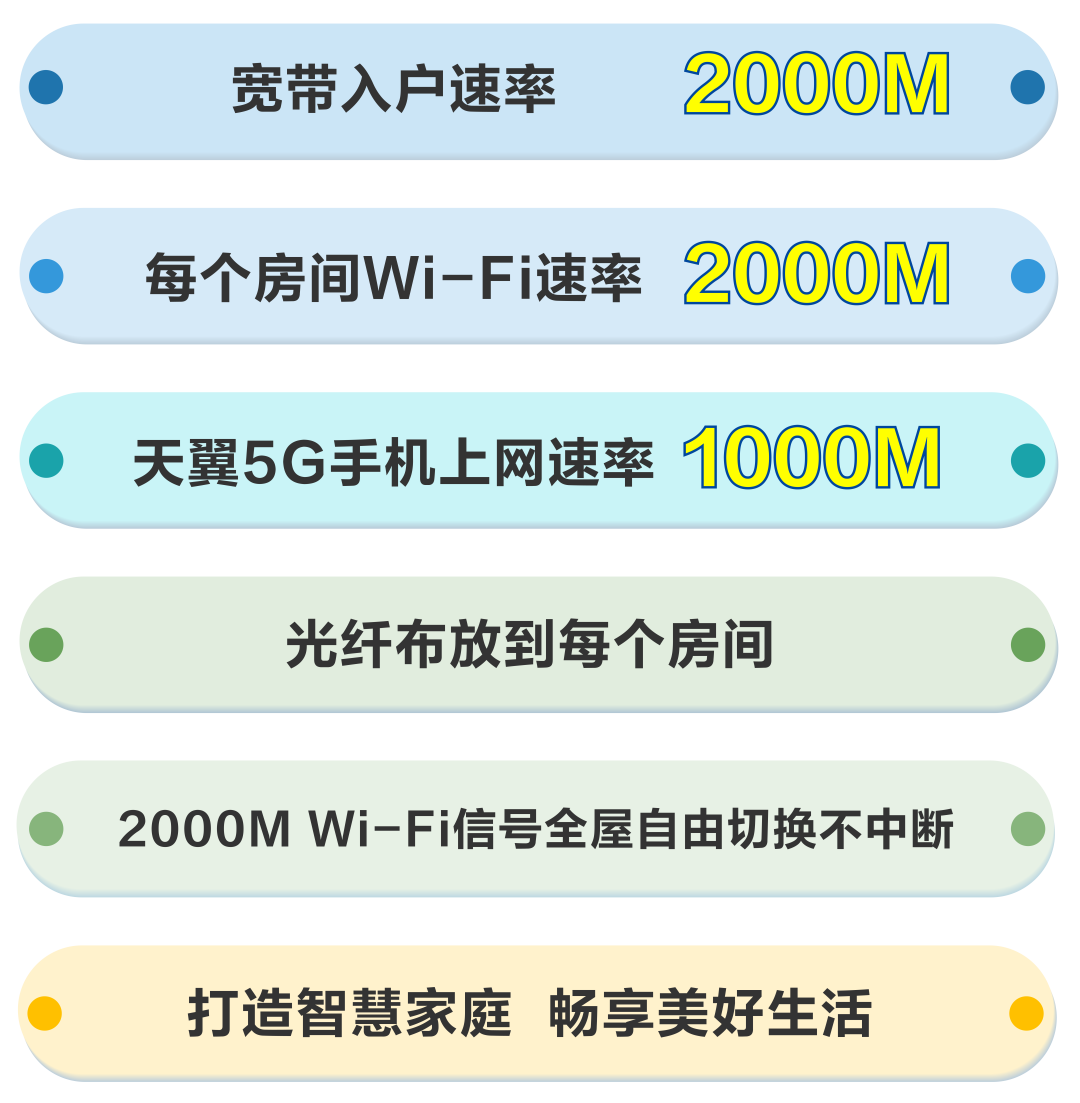 根据官方的介绍,宽带入户速率能达到2000M,每个房间WiFi速率2000M。