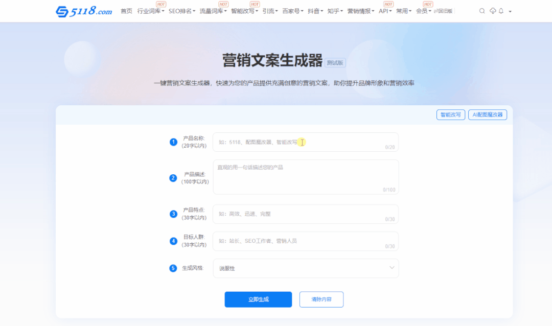 「营销文案生成器」功能上线后,广受用户喜欢,5118也根据用户需求,对生成条件进行升级