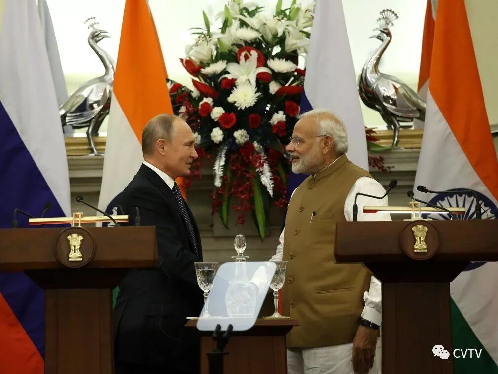 当地时间2018年10月5日,印度总理莫迪(Narendra Modi,)与俄罗斯总统普京(Vladimir Putin)在印度新德里举行双边会谈。印度与俄罗斯将在当日举行的领导人双边峰会上签署包括将俄罗斯新型防空导弹系统S-400在内的70亿美元军购大单。