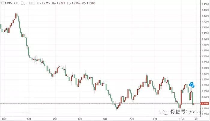在拉布辞职的消息传出后,英镑在伦敦时间上午从1.2994美元暴跌至最低点1.2723美元。受特蕾莎·梅英国议会退欧草案命运不确定因素的驱动,英镑在一夜之间波动不定。周五亚洲早盘,英镑上涨0.12%,至1.2788美元。