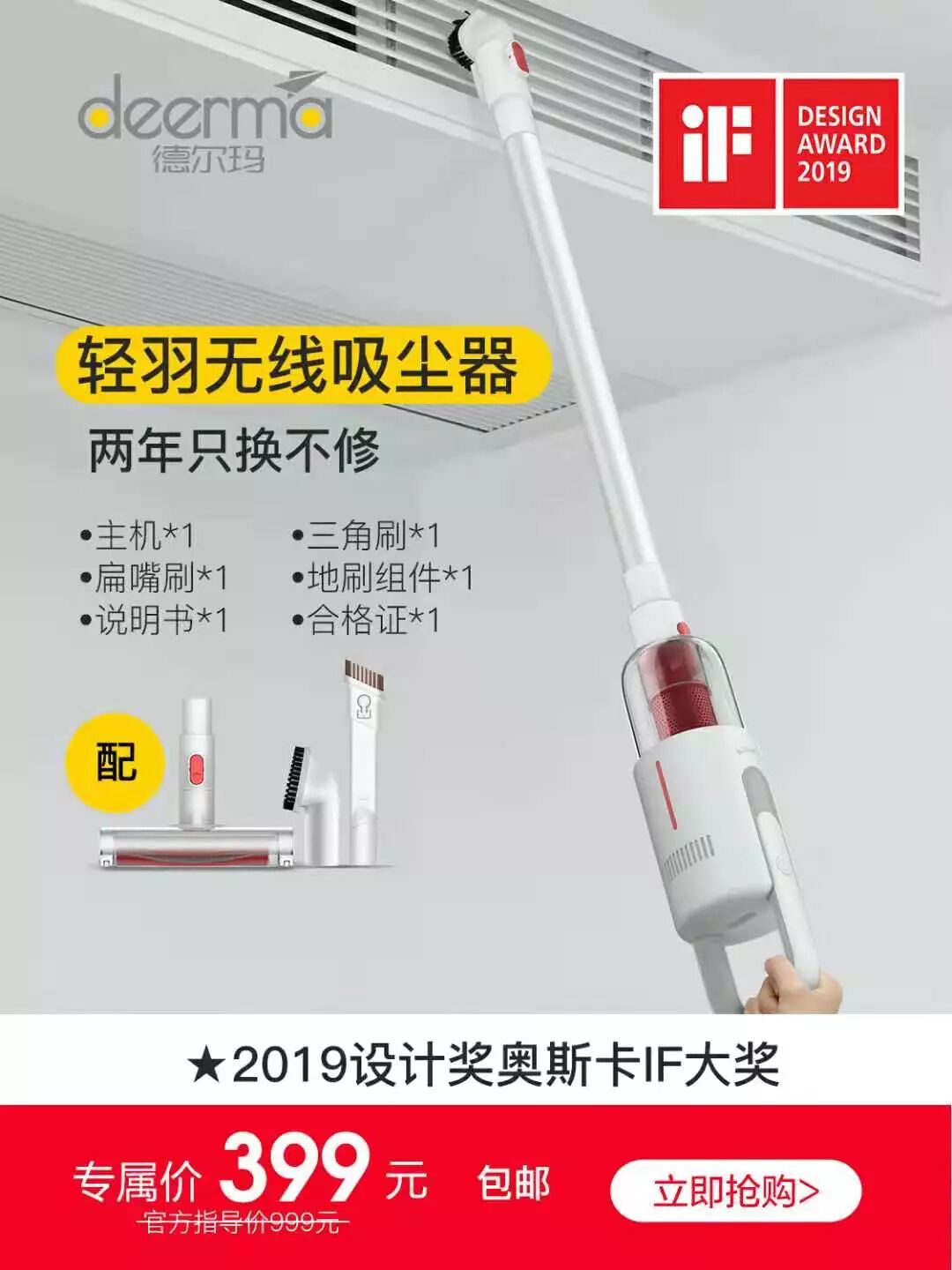 国货精品德尔玛吸尘器超低价:轻便有线吸尘器指导价699元,专属价179元;轻羽无线吸尘器指导价999元,专属价399元。点击【睿意生活馆(点击进馆)】查看超高性价比、超高水平设计的国货精品,决不让你失望!